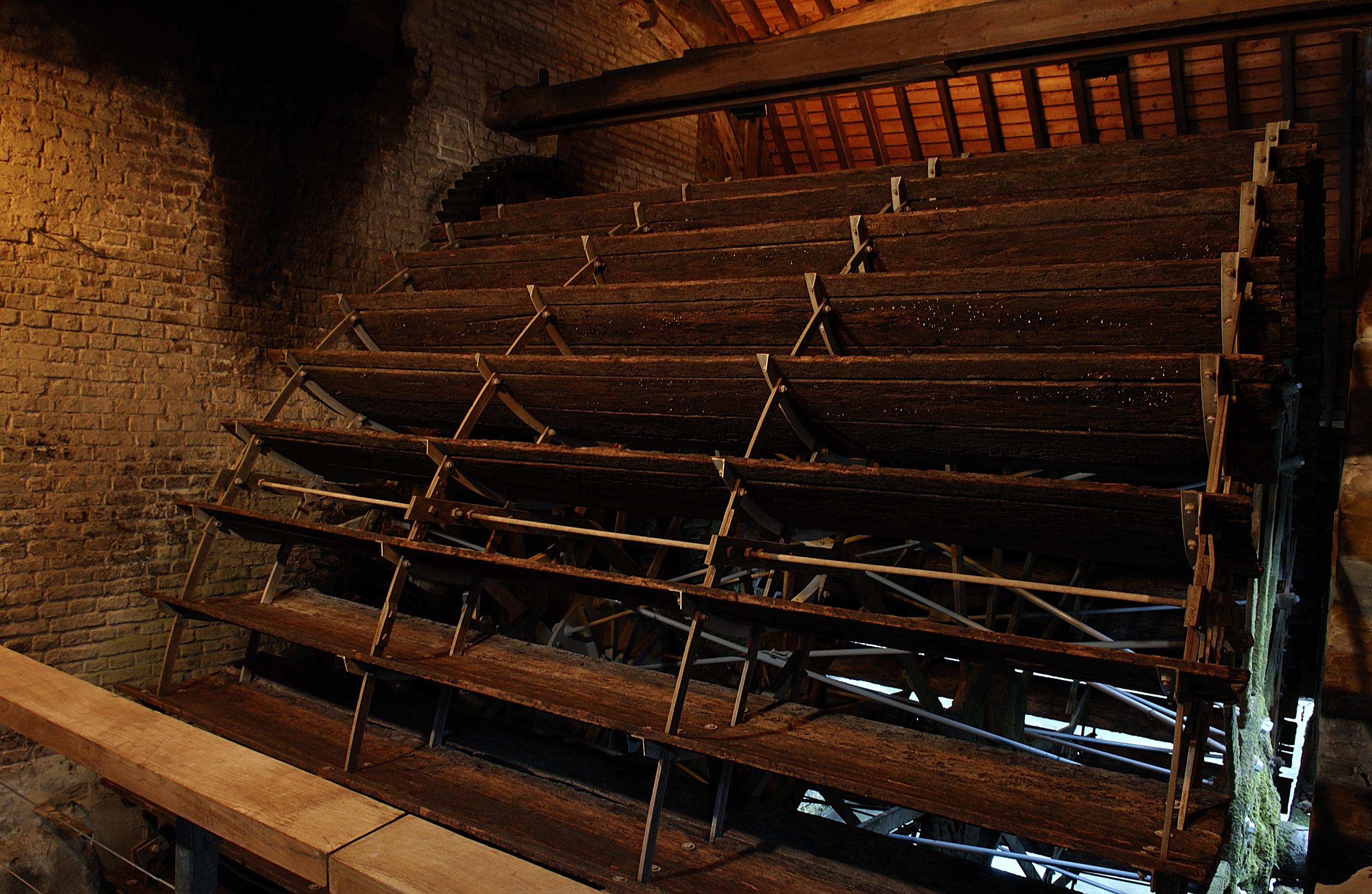 L’énergie nécessaire au fonctionnement des machines est fournie par cette roue dite « en dessous », car elle est actionnée par le cours de la rivière, sans avoir recours à une chute d’eau. Ce sont, en fait, le débit régulier et la pente douce qui offrent l’énergie et la quantité d’eau nécessaires à son fonctionnement.
